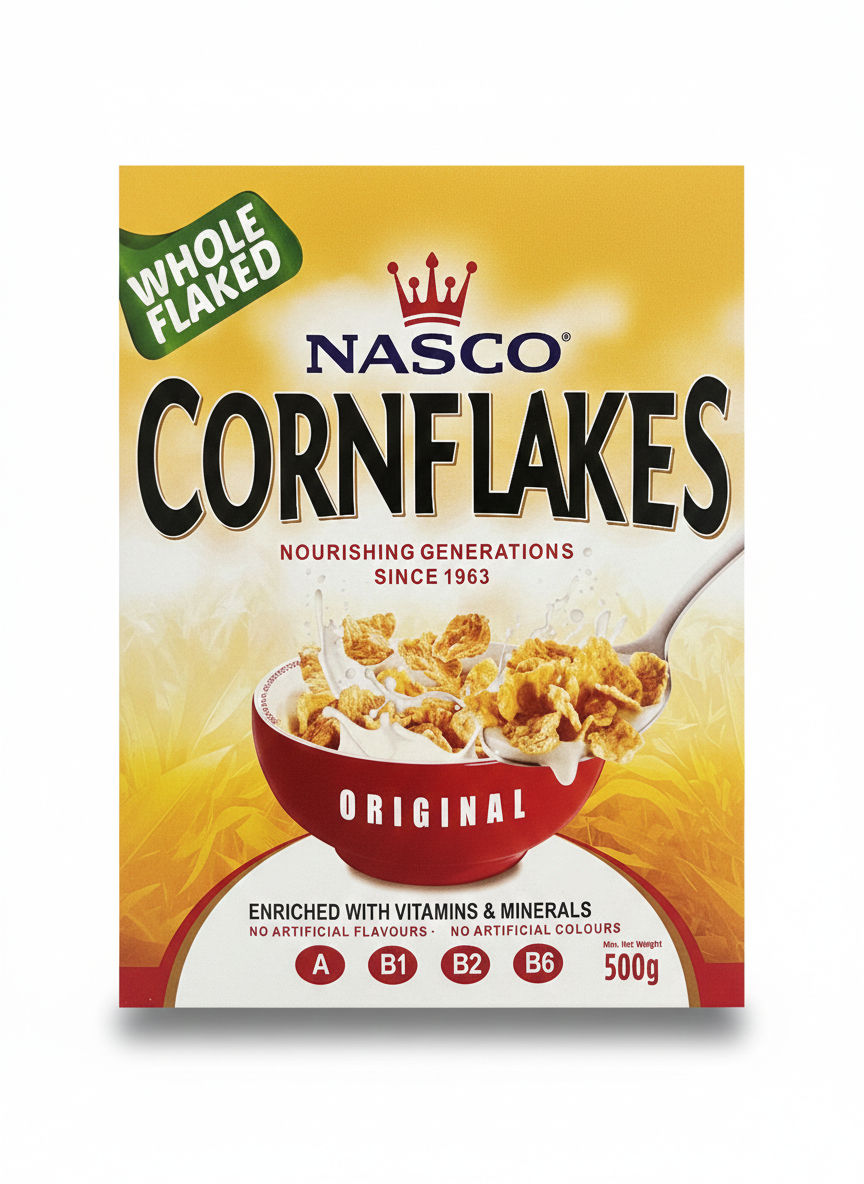 Kickstart your mornings with the classic, crispy goodness of Nasco Original Cornflakes. Made from premium corn, these golden flakes are lightly toasted to deliver a satisfying crunch and natural, wholesome taste that the whole family will enjoy.
